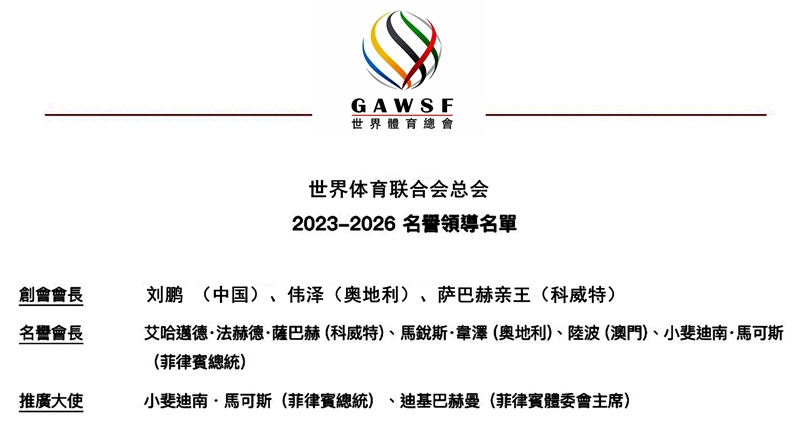 大会主题:武动亚太・论剑澳门 ——2025 亚太武搏联盟高峰论坛暨风云人物颁奖盛典。 2025年6月27 日 - 29 日,“2025中国・澳门世界体育总会亚太武搏联盟高峰论坛暨亚太武搏风云人物颁奖盛典”将在世界体育联合会总会(澳门)总部隆重举行。作为亚太武搏领域年度巅峰盛会,本次活动以 “传承、创新、共融” 为主题,集颁奖盛典、高端 坛、项目展演、商务洽谈于一体,汇聚全球 武搏项目精英,共襄武搏发展盛举。时间:2025年6月27日-29日(3天)地点:中国·澳门世界体育总会总部世界体育联合会总会简介: 世界体育联合会总会(Global Association of World Sports Federations,简称:世界体育总会/GAWSF)是具有重要国际影响力的非营利性国际体育组织,致力于通过为全球数百个国际、洲际及国家体育联合会会员提供战略支持与协同服务,推动世界体育事业的可持续发展。【历史沿革】 GAWSF的发展历程可追溯至2014年11月20日,由国际奥委会副主席、国际武术联合会主席于再清先生,时任国家体育总局局长刘鹏先生,国际柔道联合会主席韦泽先生,澳门体育界杰出代表谢广汉博士共同发起,在澳门特别行政区注册成立。作为具有独立法人资格的国际组织,其成立初期即获原世界体育总会(SportAccord,后更名为GAISF)授权,设立"世界体育总会亚太区总部"(2017年更名为亚太体育联合会总会/GAAPSF)。 2022年11月原世界体育总会(GAISF)解散后,GAWSF于2023年1月召开会员大会,经全体会员一致决议,正式更名为"世界体育联合会总会",全面继承原GAISF的宗旨使命,持续履行全球体育治理核心职能。一、组织机构■ 主办单位 世界体育联合会总会(GAWSF) ■ 支持单位(按区域/领域排序) 1. 亚洲武术联合会 2. 非洲武术联合会 3. 世界体育大学 4. 少林禅南美洲国际协会 5. 马来西亚传统武术交流协会 6. 国际体育网络组织 7. 人道主义运动会 8. 拉丁美洲少林寺达摩院 9. 西班牙少林文化中心 10. 马达加斯加国家武术总会 11. 澳门武术总会 12. 西班牙武之禅中国文化中心 13. 阿根廷少林文化协会 14. 世界体育总会武搏委员会 15. 中国国际综合格斗联合会16. 国际混合武术联合会 17.天津市滨海新区武术运动协会18.福建省万籁声自然门武学研究院■ 承办单位 1. 世界体育总会亚太武搏联盟 2. 山东外事职业大学亚太武搏研究院 3. 美国中国企业家中美武术文化交流中心 4. 亚太武搏品牌管理委员会 5. 亚太武搏(河南)文化传播有限公司 ■ 协办单位 1. 澳门少林禅武文化研究会 2. 墨西哥禅武协会 3. 珠海岭南禅武道研究院 4. 亚太武搏龙狮专业委员会 5. 亚太武搏世界非遗(释心定大师)书画专业委员会二、大会亮点星光熠熠,荣耀时刻盛会期间,世界体育总会执委会主席谢广汉,中国武术协会副主席胡春泉、田苏辉,少林寺武僧队创始人首任总教头、少林寺功夫嫡宗传承人释德扬禅师以及亚洲武术联合会、非洲武术联合会的重要嘉宾,香港、澳门武术界神秘嘉宾将亲临现场,为荣获“亚太武搏风云人物”的杰出代表,颁发象征着荣誉与成就的勋章和证书。本次大会暨颁奖盛典以“传承、创新、共融”为主题,吸引亚太地区武搏领域的武术非遗传承人、顶尖运动员、知名教练、赛事组织者、行业专家等各界精英纷至沓来。他们将汇聚一堂,回溯武搏运动的光辉历程,交流沉淀多年的宝贵经验,共同为武搏事业的未来发展出谋划策。颁奖环节无疑是本次盛会的焦点。世界体育总会将对过去几年在各武搏项目中表现卓越的优秀传承人、优秀运动员、优秀教练元和团队进行表彰。从激烈对抗的自由搏击赛场,到展现精湛技艺的传统武术舞台;从培养无数优秀人才的专业培训机构,到为赛事成功举办默默付出的组织团队,每一个奖项都代表着对他们努力与成就的高度认可。这不仅是个人和团队的荣誉,更是对整个武搏运动发展的激励与推动 。深度交流,智慧碰撞大会期间,将安排精彩纷呈的主题论坛与研讨活动。围绕武搏运动的发展趋势、人才培养体系建设、赛事商业化运营、文化传承与国际交流等热点话题,参会嘉宾将展开深入交流与探讨。在这里,你可以聆听行业专家的前沿观点,了解最新的武搏运动发展动态,获取宝贵的经验与启示,为个人和机构的发展提供新思路。多元活动,共促发展除了颁奖和论坛,年会还精心筹备了丰富多样的活动。武搏项目展演环节,顶尖运动员将带来精彩绝伦的表演,展示武术、搏击等项目的独特魅力与高超技艺,让观众近距离感受武搏运动的激情与力量;商务洽谈与合作对接活动,为武搏产业链上下游企业搭建沟通合作的桥梁,促进资源共享、互利共赢,推动亚太武搏产业的繁荣发展。无论你是武搏运动的忠实爱好者,还是武搏行业的从业者,2025中国·澳门世界体育总会亚太武搏联盟发展大会高峰论坛暨颁奖盛典都将是你不容错过的年度盛会。让我们相约在这个充满希望与活力的时刻,共同见证亚太武搏运动的荣耀与辉煌,携手共创更加美好的未来!三、入选标准“终身成就奖”入选标准:1.从事武搏项目相关工作(如教学、研究、推广等)满 30 年,年龄在70岁以上,对武术事业发展有持续性贡献,省级、国家级非物质文化遗产的优秀代表性传承人;2.在武搏项目理论、技术体系、文化传承等方面有重大创新或深远影响,推动行业进步;3.培养大批优秀武搏项目人才,或在国际国内重大活动中发挥核心引领作用,社会声